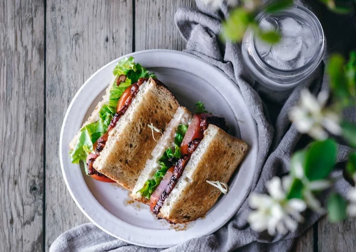 Very very delicious- Each mouthful is a balanced sensory experience. Creamy vegan mayonnaise offsets the crunchy toasted bread and crispy lettuce. A layer of juicy tomato combined with umami tempeh bacon is pretty much sandwich perfection.