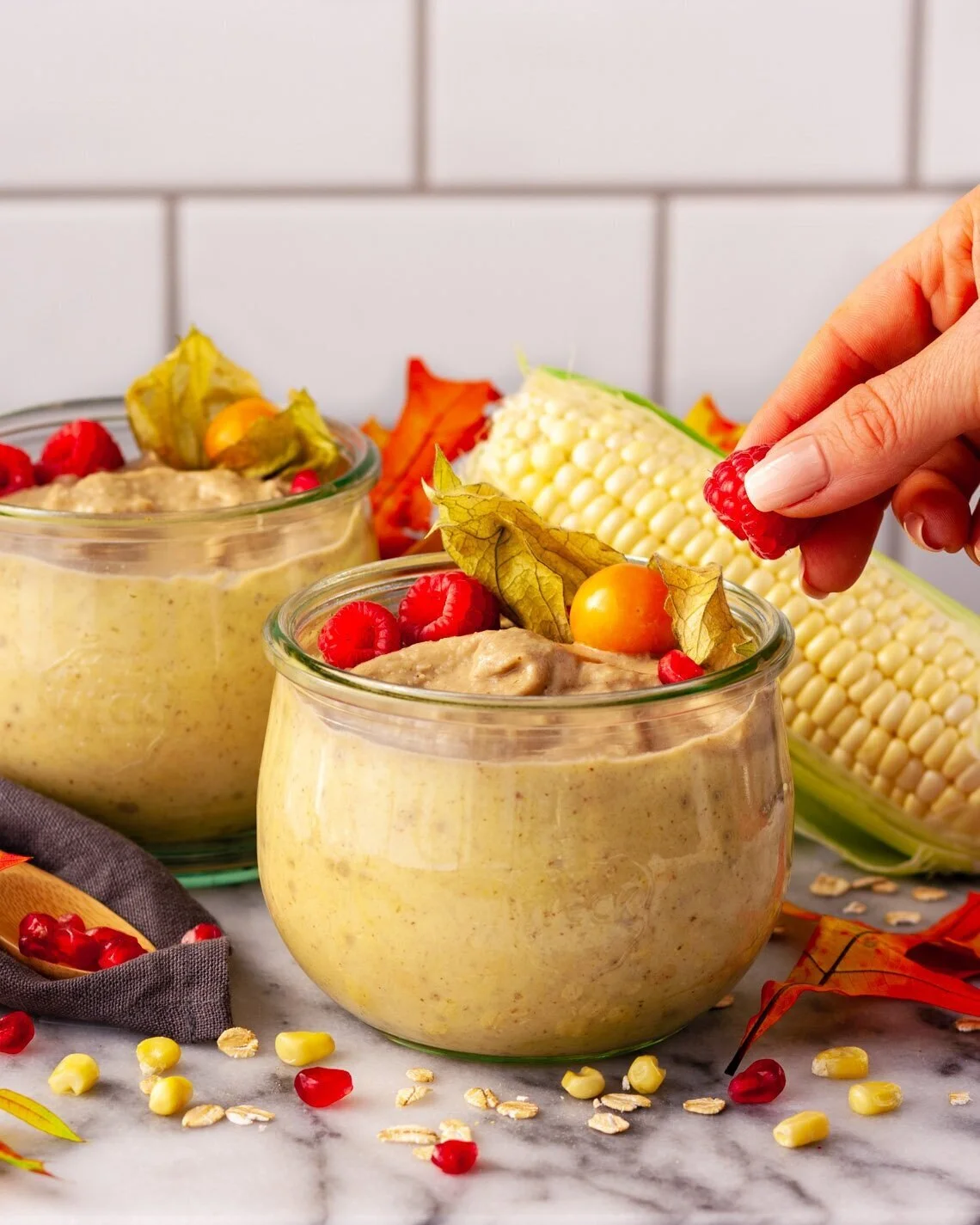 Move over cornbread, it’s smoothie bowl time! Delicious sweet corn and yellow zucchini blend up into a healthy plant-based breakfast with just a touch of cakiness from the rolled oats, and all the good feels of traditional cornbread. Protein-rich from the almond butter and rolled oats, this filling smoothie bowl tastes mildly sweet from the corn, dates, and bananas. Great if you need a healthy comfort food meal in a hurry. I’ll even make one for lunch if I don’t feel like eating a salad but want something sweet and creamy that’s secretly packed with veggies.