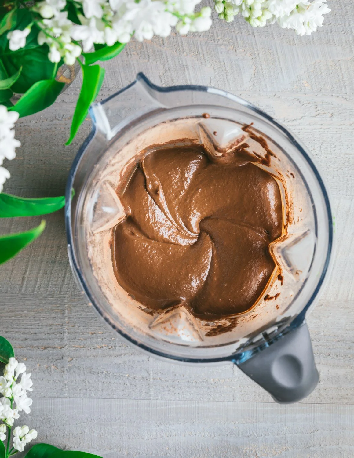 2. Blend at medium speed for about 30 seconds to combine your ingredients. At this point, you can use the tamper to push the ingredients toward the blade or stop and scrape down the sides of the container. Continue to blend at medium building to high speed until the mousse is silky smooth and creamy. This may take a minute or more depending on what type of blender you’re using.