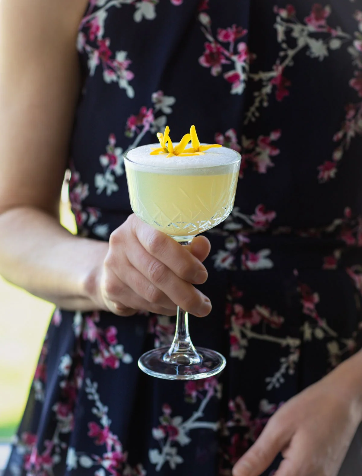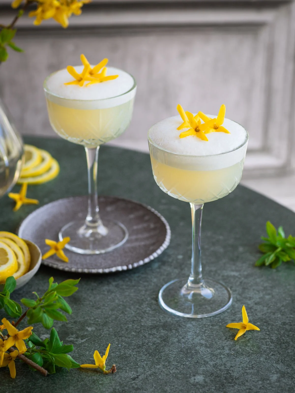 Vegan Gin Sour Recipe with Forsythia Simple Syrup