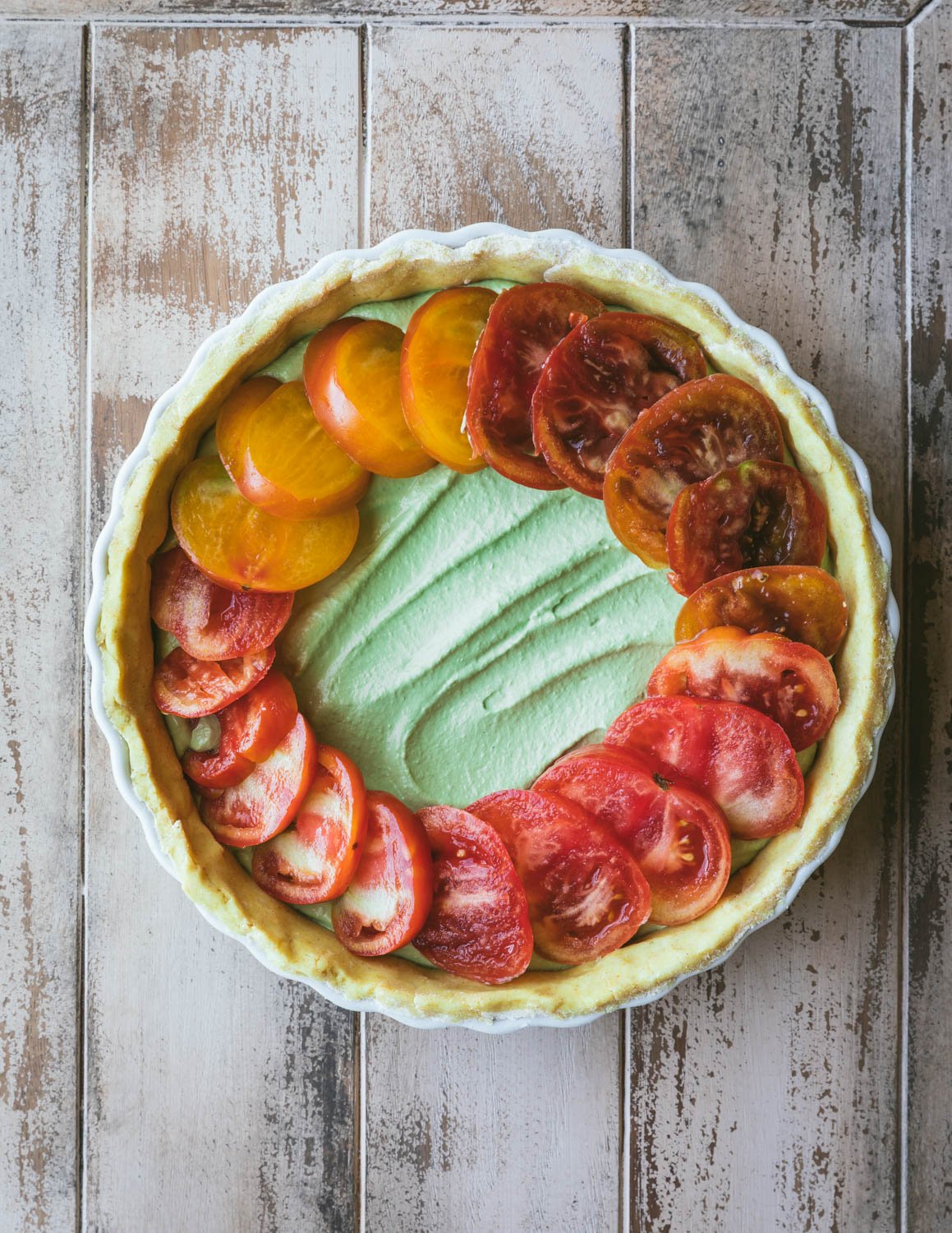 Vegan Heirloom Tomato Tart with Basil Cashew Cream